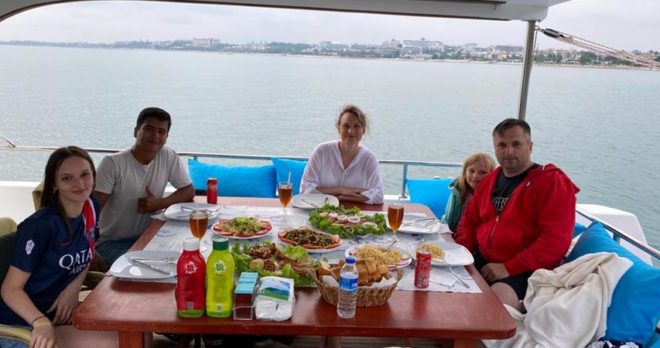 Genießen Sie ein offenes Buffet-Mittagessen mit Huhn, Fisch, Frikadellen, Pasta, Salat und Obst, mit unbegrenzten alkoholfreien Getränken. 🥤 Dieses kulinarische Erlebnis auf dem Deck der Yacht, mit atemberaubenden Mittelmeerblicken, bereichert das exklusive Bootsabenteuer in Side.