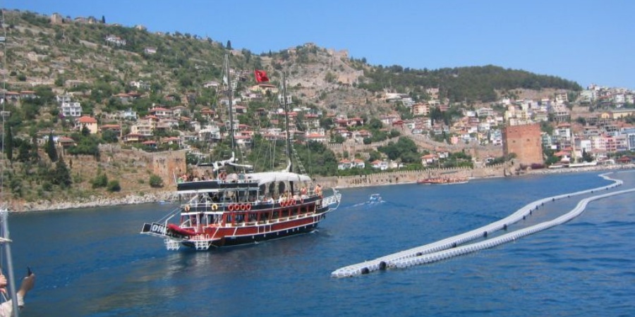 Bootstour (1 Stunde): Segeln Sie entlang der Küste von Alanya und bewundern Sie den Cleopatra-Strand und historische Wahrzeichen. 🛥️