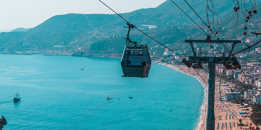 Spannende Seilbahnfahrt: Schweben Sie über Alanya für Panoramablicke auf das Schloss und die Küste, die den Nervenkitzel einer Side Jeep Safari hervorrufen. 🎡