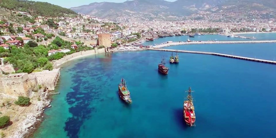 Bootstour (1 Stunde): Segeln Sie entlang der Küste von Alanya und bewundern Sie die Burg von Alanya, den Roten Turm und den Kleopatra-Strand. 🛥️