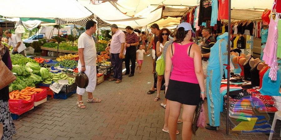 Kulturelle Immersion: Schlendern Sie über den lebhaften Marktplatz von Alanya, der den Nervenkitzel einer Side Jeep Safari hervorruft. 🛍️