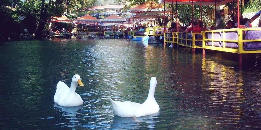 Mittagessen am Dim-Fluss: Genießen Sie ein Buffet mit gegrilltem Hähnchen, Forelle oder Kebab mit Pasta und Salat unter Pergolen am Flussufer. 🍽️