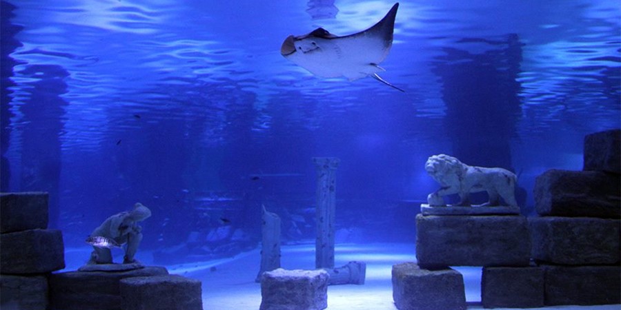 Größtes Tunnelaquarium der Welt: Staunen Sie über den 131 Meter langen Tunnel im Antalya Aquarium, Heimat von 200 Haien und Tausenden von Meeresarten. 🐟