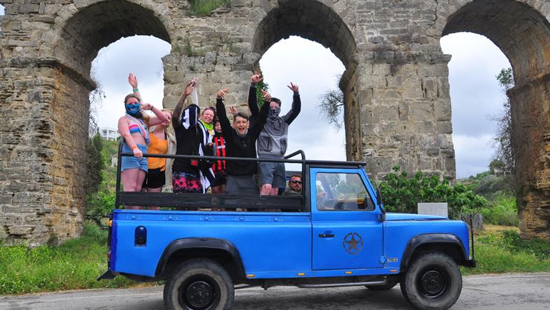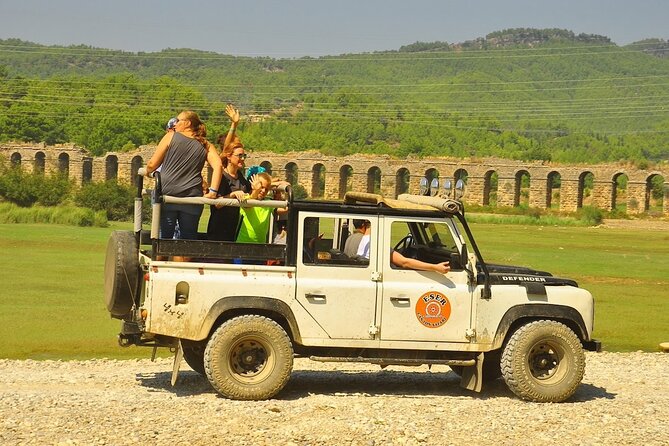 Navigieren Sie durch schlammige Pfade, Flussüberquerungen und Hügel im Konvoi, mit Wasserschlachten mit bereitgestellten Plastikflaschen für Lacher! Halten Sie für Fotos an der 1.800 Jahre alten Naras-Brücke und römischen Aquädukten, geführt von Profis, die die anatolische Geschichte teilen. Ein Highlight der Side-Ausflüge! 📸 <grok:render type="render_inline_citation">0</grok:render>