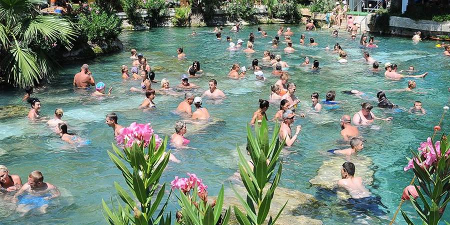 Therapeutische Gewässer: Entspannen Sie im Kleopatra-Pool, bekannt für seine heilenden Eigenschaften. 🏊♀️