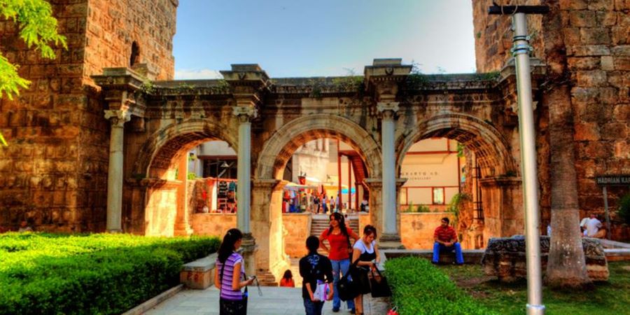 Kaleiçi Altstadt (2 Stunden): Erkunden Sie das Hadrianstor, osmanische Häuser und den Yachthafen, mit einem Mittagessen mit gegrilltem Hähnchen oder Döner-Kebab. 🏛️